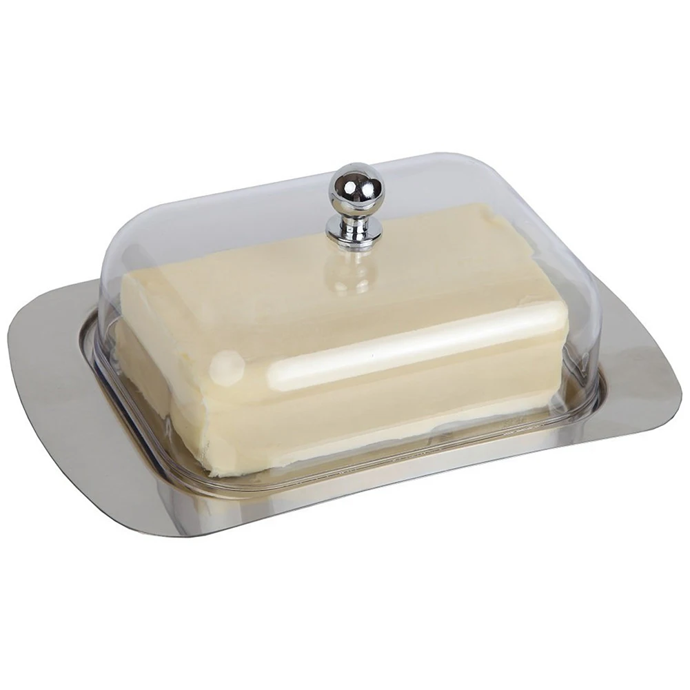 1Pc Durable Stainless Steel Butter Dish Box Container Cheese Server Storage Keeper Tray With Acryli
