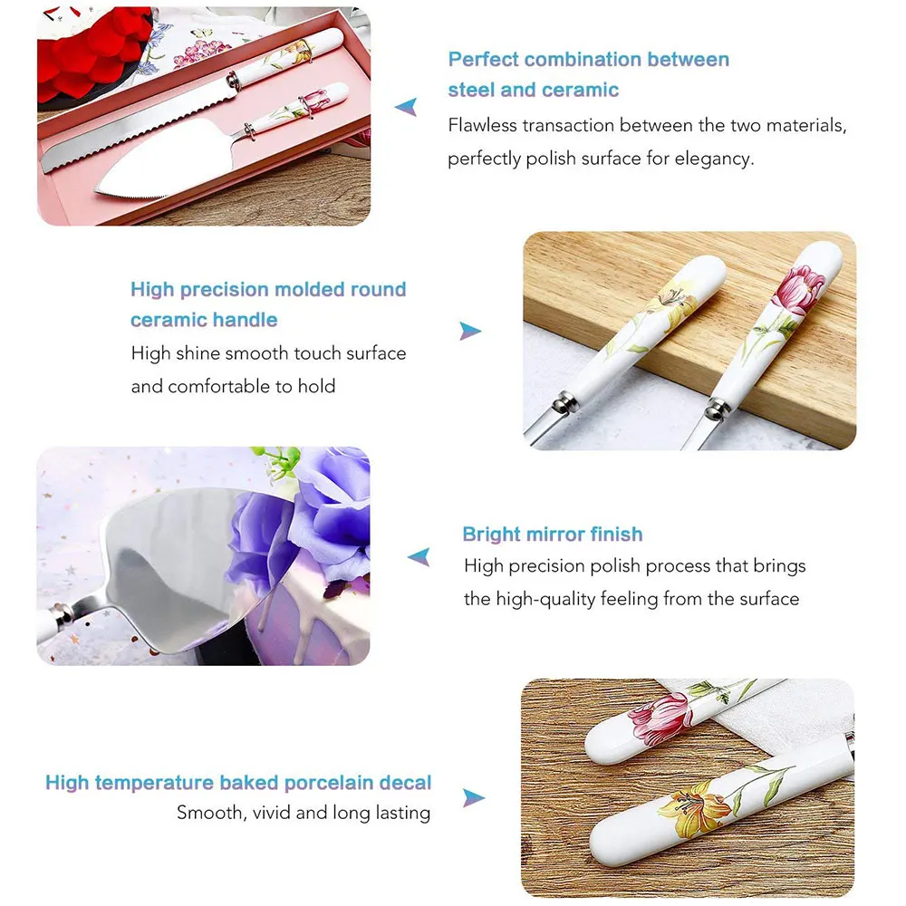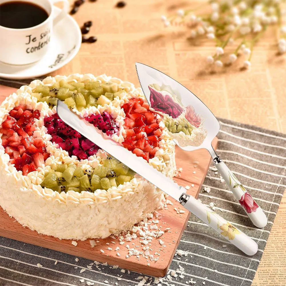 HIGH QUALITY 2 PCS Cake Knife Set Cake Shovel Stainless Steel & Ceramic Pizza Cheese Shovel Kitchen Baking Tool
