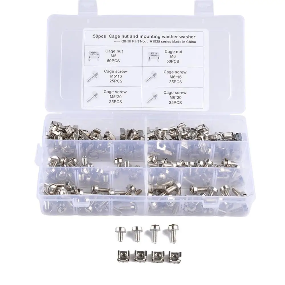 BEST Cage Nut And Mounting Screw Bolts Washers Metric Square Hole Hardware For Rack Mount Server Shelves